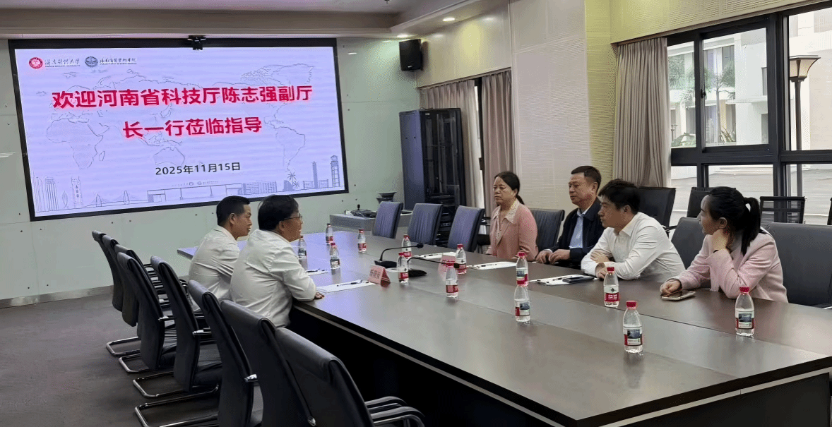 2025年11月15日上午,河南省科技厅陈志强副厅长一行来到海南省药物研究与开发科技园(以下简称“药科园”)开展调研指导工作。资产经营有限公司董事长杨晓波和药科园主要负责人田树红陪同调研。