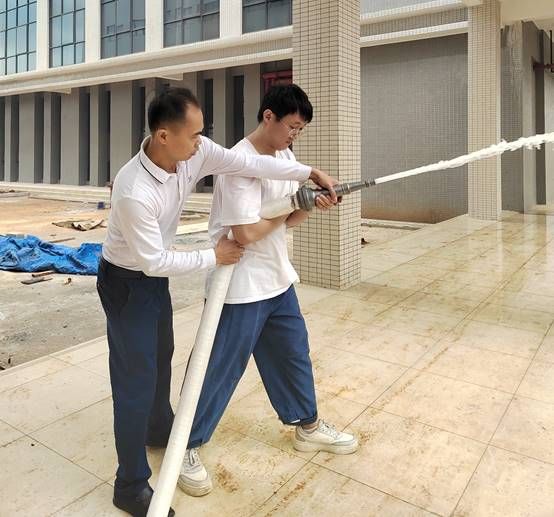 接着由保卫处的叶康老师向大家详细讲解了常用消防灭火器、水枪水带、灭火毯等消防器材的用途、并亲自演练了操作方式、以及在使用中应注意事项等知识,同时进行了针对性的灭火演示。