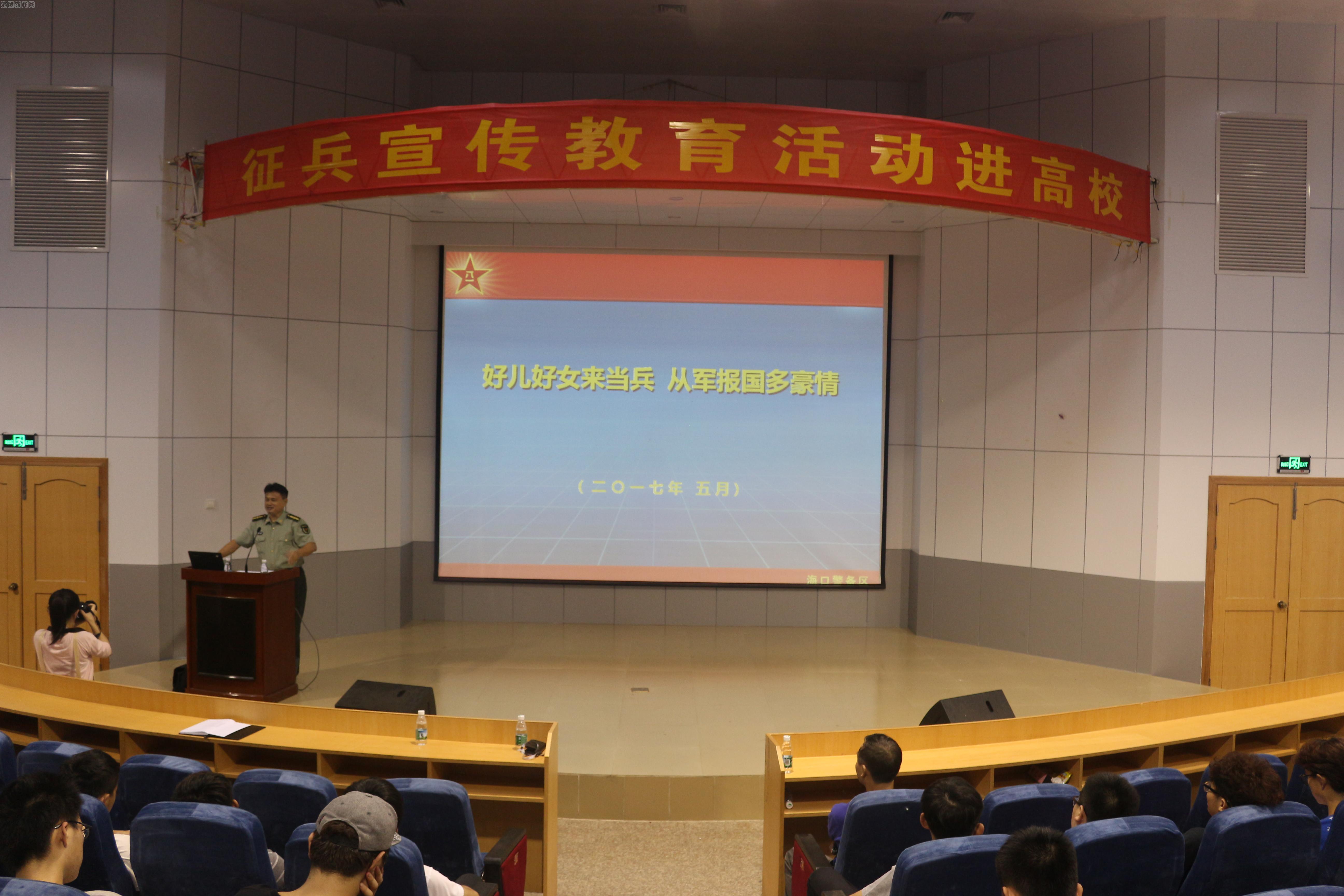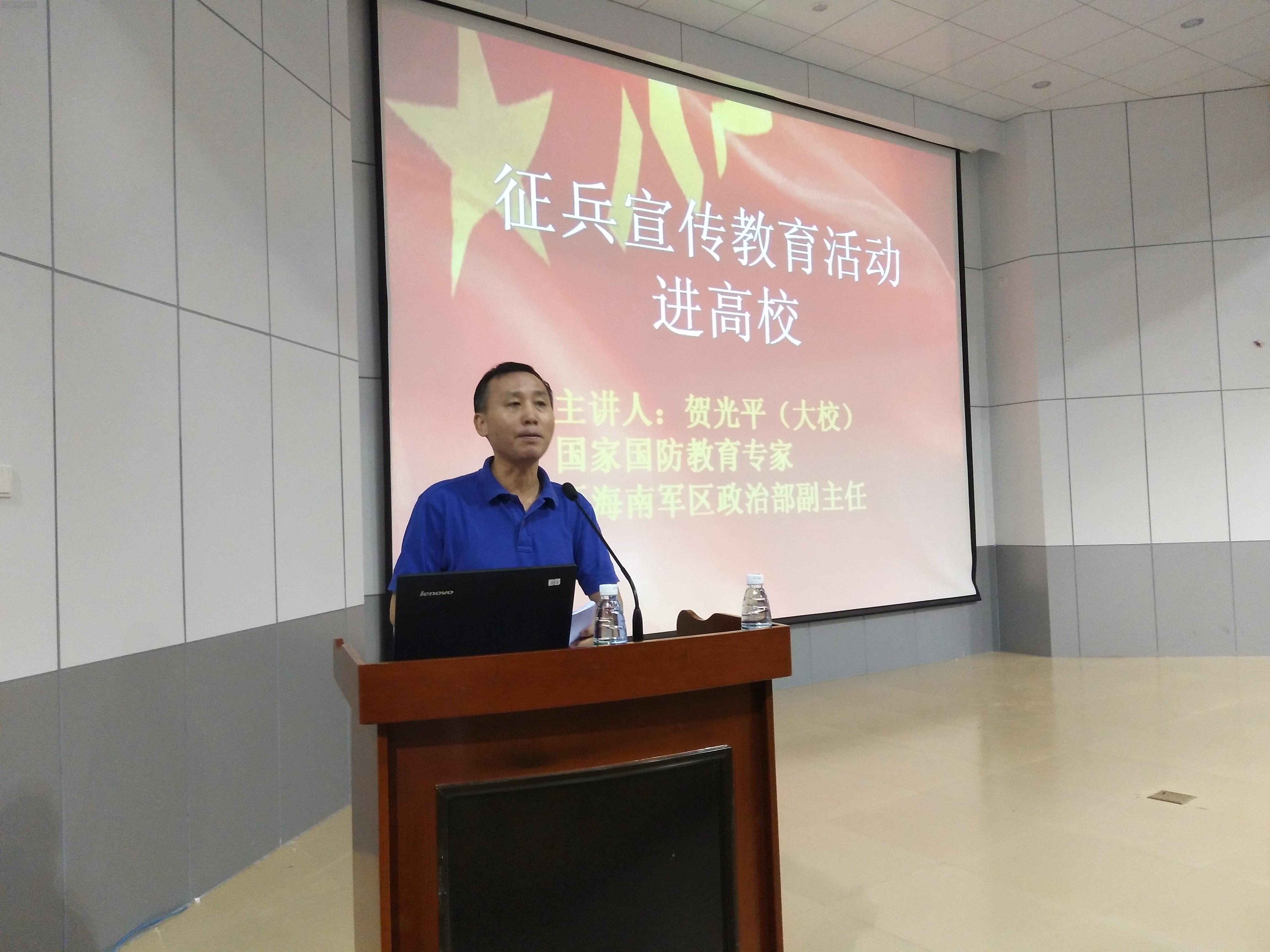 贺光平大校用生动而真诚的语言从当兵的意义、当兵的使命、当兵的政策优惠等几个方面为在场同学深刻地讲述了当代大学生征兵入伍的重要性及社会、国家价值。其中贺光平大校从古书《诗经》、《孙子兵法》讲到当代大学生的国防教育,从军人精神讲到军队对国家民族的重要性,从众多身边的优秀军人故事讲到历代国家主席的军人情节,特别讲到习近平总书记的军人经历时想到自己的一生光荣的军人身份,还在现场深深感谢了国家和党给了自己圆梦军人的机会,贺光平大校深情地说到“我将无悔自己一生的军人身份,并为之时刻骄傲自豪”,引得现场同学深受感动,掌声不断。