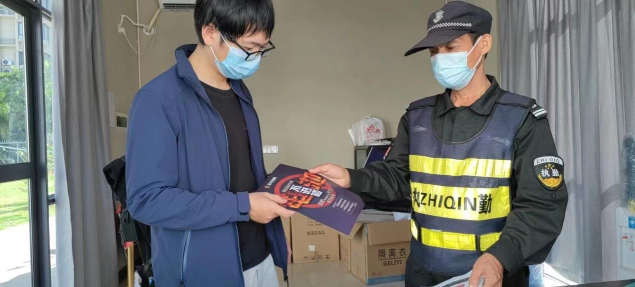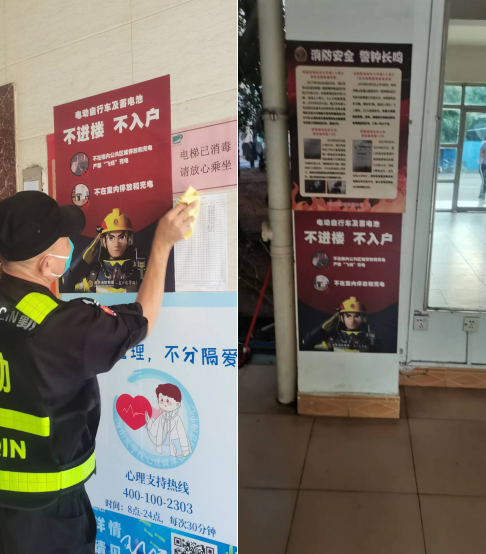 安保人员在各楼栋内张贴电动车消防安全宣传海报