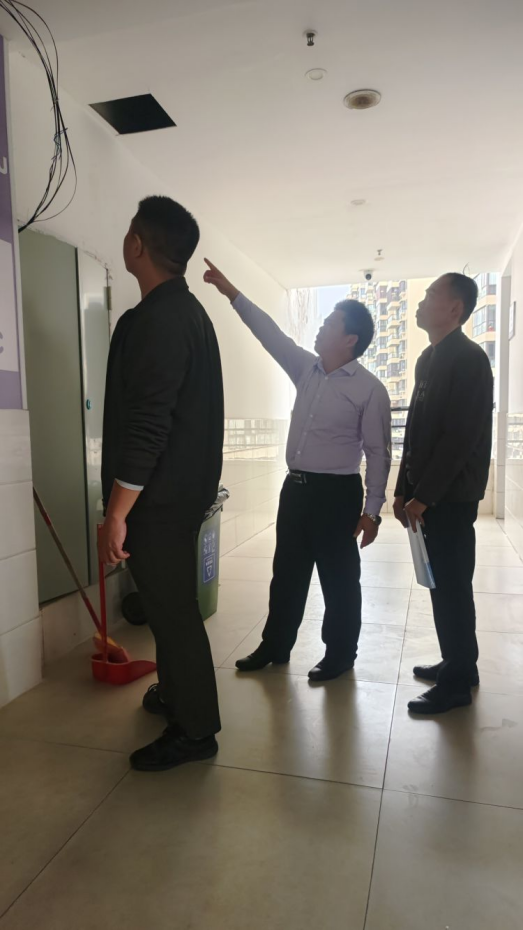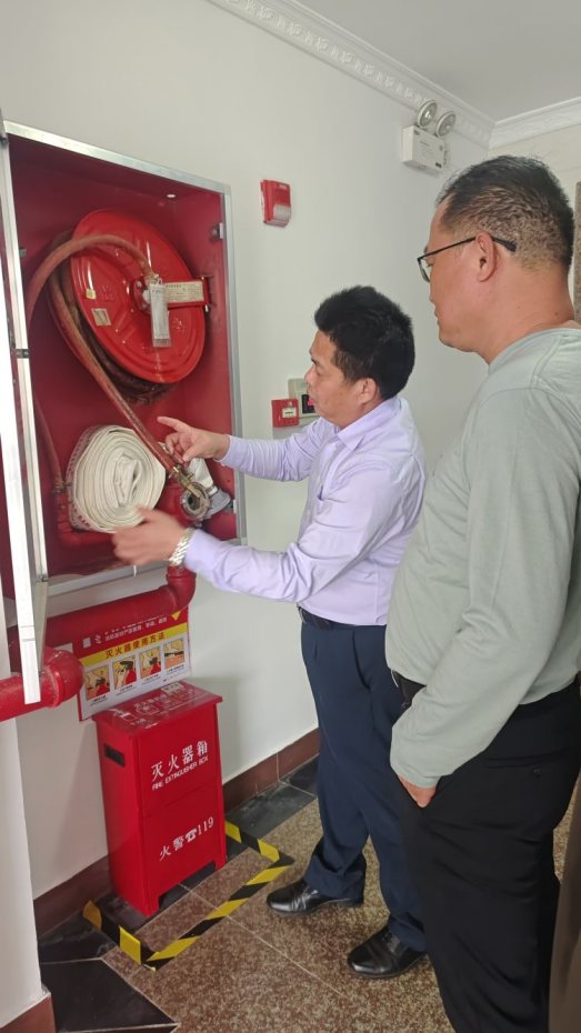 经检查,一是荔园餐厅一楼食堂内东侧监控画面损害无信号反馈、二楼东侧楼梯口1个应急灯损坏、三楼西侧楼梯口处1个应急灯损坏。二是畅学苑九、十楼东侧楼梯口4个疏散指示灯、安全出口灯不亮。三是图书馆一楼东侧1个消火栓箱没有安装卷盘软管,报警按钮没接线。四是榴园餐厅二楼茶鹿龙奶茶店冰箱遮挡住消火栓、三楼走廊疏散指示灯7个不亮、1个灭火器指针过期等问题。五是力行楼、崇真楼部分消火栓水带老化等问题。对以上问题,王基鸿处长分别对所在区域安全责任人要求及时整改或限期整改。