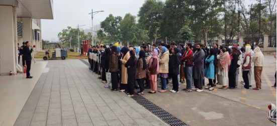 为了贯彻落实海南省教育厅有关消防安全工作的文件精神和学校党委有关安全工作会议精神,进一步加强学校安全教育,提高师生员工安全防范意识和防火救灾避险能力,2025年1月14日下午,武装保卫部(处)联合国际教育学院、现代教育中心、后勤、物业公司约100余人在六期学生公寓开展了一次模拟实景消防疏散演练和灭火演练。