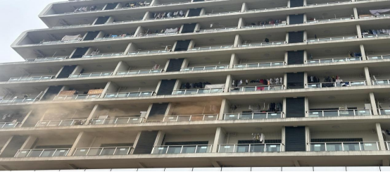 消防疏散演练前,叶康老师讲解火灾来临时如何正确自救逃生。随着烟雾弹点燃,火灾警报的响起,国教院老师迅速组织本楼层的留学生疏散逃生。参练人员按照指定路线,猫着腰,用手、袖口、湿巾等捂着嘴鼻迅速而有序的从两侧楼梯自上而下进行紧急疏散。全体参练人员在第一时间撤离到六期学生公寓的安全地带。