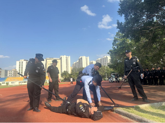 在实战演练环节,模拟了多种突发暴力场景。面对 “暴徒” 的闯入,安保人员们迅速反应,按照警官们所教导的方法,紧密配合,合理运用防暴器械,成功地将 “暴徒” 制服。整个演练过程效果逼真,安保人员们动作规范、处置果断,充分展现出了良好的应急处置能力和团队协作精神。