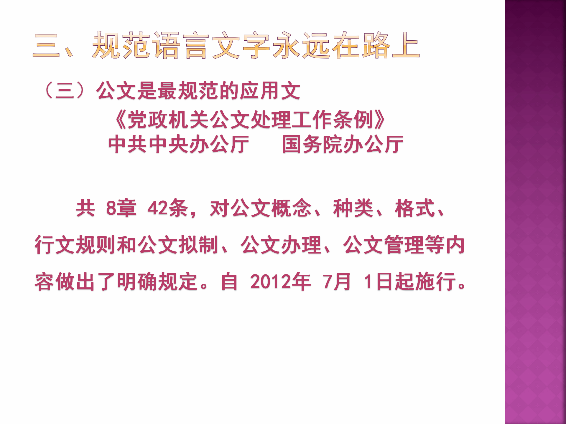 “加大国家通用语言文字推广力度”公文写作与常见应用文规范