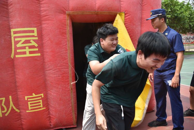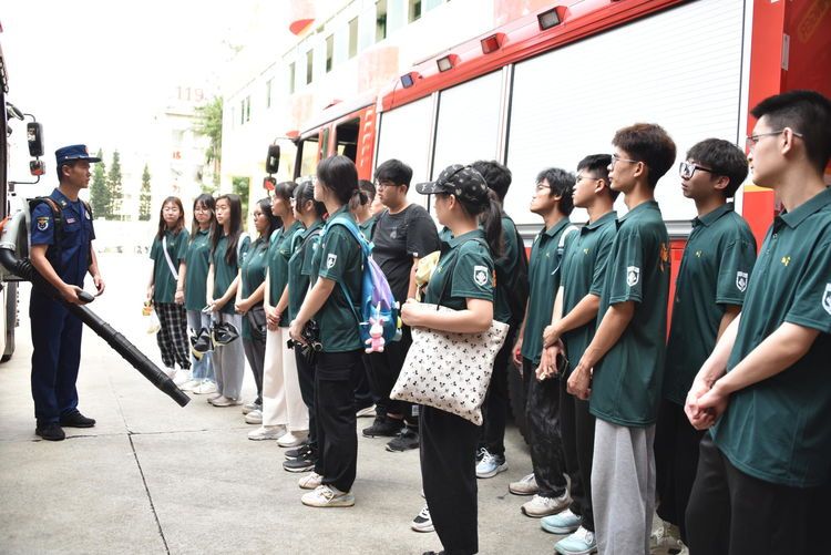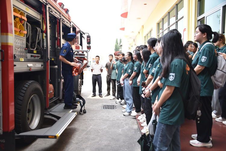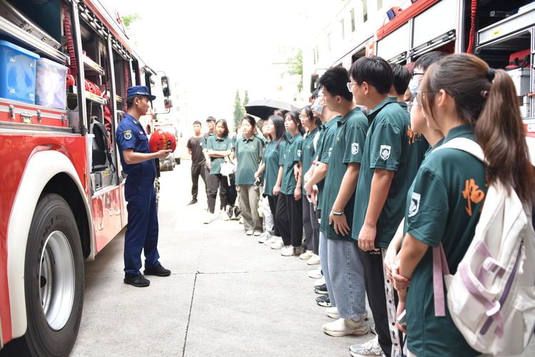 培训结束后,龙华区消防救援大队组织全体大学生消防志愿者前往金盘消防站“零距离”体验消防,学习灭火和逃生等技能。在活动现场,消防救援人员向师生们展示各类消防车,分别介绍了各类消防车上配备的消防器材装备的功能和应用范围,邀请大学生志愿者坐上消防车、穿上灭火战斗服和抢险救援服等,并鼓励志愿者们拍照留念。随后逐一开展干粉灭火器和灭火毯的灭火实操演练及模拟火场逃生帐篷体验等。
