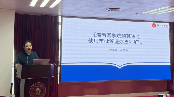 培训会上,财务处处长余勇晖首先介绍了《海南医学院预算资金使用审批管理办法》修订的背景、必要性和依据,并对文件中的条款逐一解读,结合案例进行详细讲解。他指出,本次审批制度的修订,是贯彻落实省委省政府支持海南医学院深化改革高质量发展的具体体现,目的就是要压实学校各级部门的责任,建立以信任为基础的层级管理、职责明晰的经费使用体系,为学校深化改革做好准备和保障。最后,余勇晖着重强调了审批权限下放后,各二级部门应建立健全内部控制制度,加强制度建设,强化二级学院党政联席会和党政管理部门、教辅单位的部门会议对经济事项的决策和监督作用,着力提高各单位的治理能力和管理水平;财务、审计部门应加强对各二级部门的监督和指导,与纪检部门贯通协调,增强监督合力,确保资金使用安全有效。