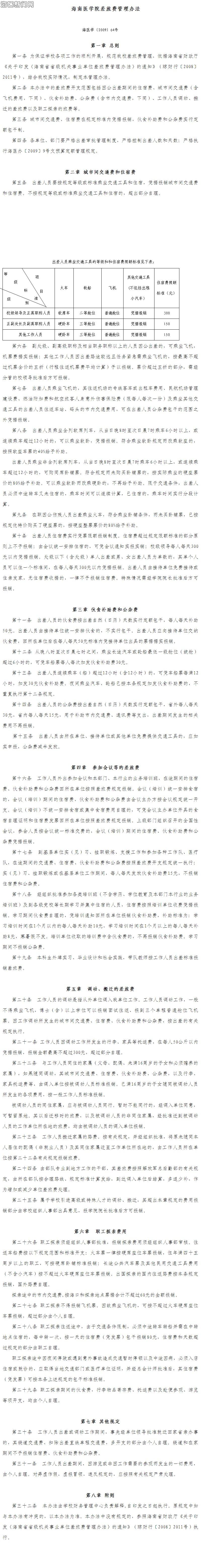 《海南医学院差旅费管理办法》