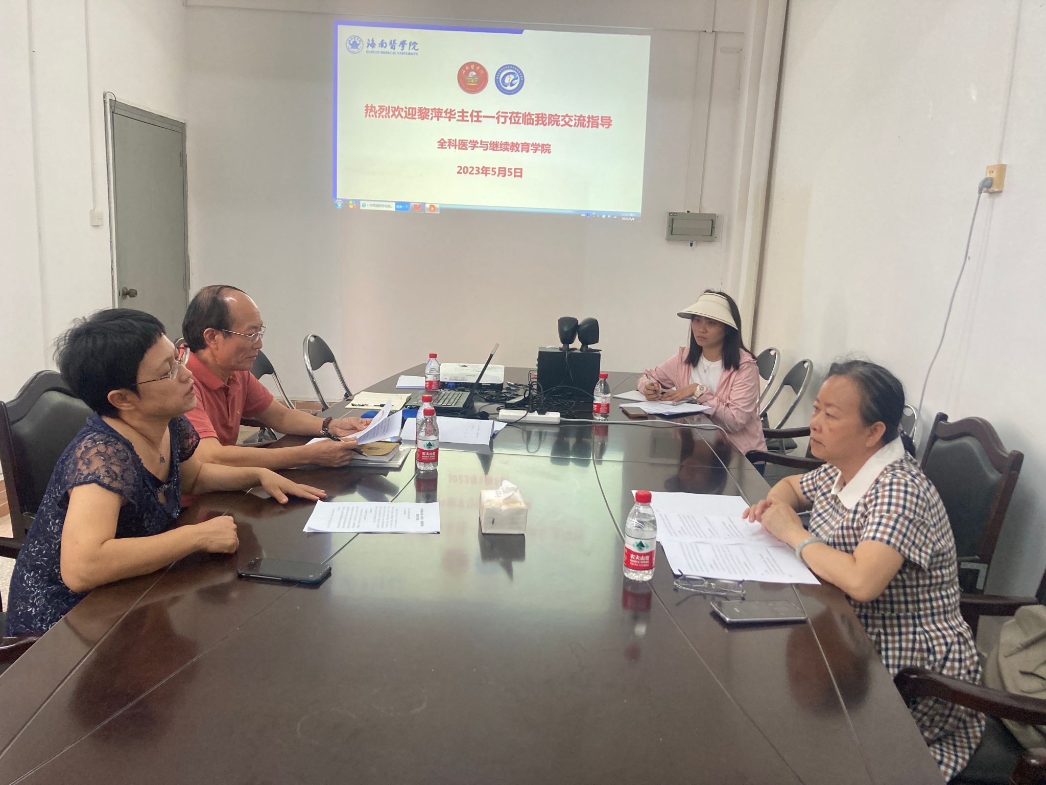 2023年4月底5月初,学院先后与白沙县人民政府、保亭县人民政府有关部门座谈,了解当地医疗卫生人才培养、基层医务人员能力提升等方面的现状与需求。紧接着,5月12-13日,学院党委书记王身坚,院长常彩红,党委委员、党政办公室负责人王鹏一行深入陵水县人民医院、陵水县第二人民医院,围绕“坚持学校教育、毕业后教育、继续教育相结合,学历教育与非学历教育并举,构建基层卫生应用型人才培养长效机制,加强全科医生队伍建设”的内容展开调研,并在陵水县人民政府的大力支持下,与当地人才局、编办、卫健委、教育局、财政局、人社局、卫生院等部门负责人面对面交流,初步在订单定向本科生培养、成人教育学历提升、乡村全科医师队伍建设、助理医师实践教学基地建设、送教下乡等方面达成合作意向。