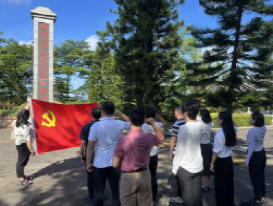 活动的第一站澄迈金江镇黄竹村解放海南岛美亭大决战革命烈士纪念碑。纪念碑前,在我院党委书记王身坚的领誓下,全体党员重温入党誓词并庄严宣誓,随后以现场教育形式,邀请黄竹村党总支书记王正日讲解美亭大决战战争历史,全体党员、发展对象、入党积极分子共上一堂现场教育党课。通过党课学习继承和发扬党的光荣传统和优良作风,进一步增强了党的凝聚力和战斗力,激励广大党员坚定理想信念,牢记使命宗旨,勇于担当作为。