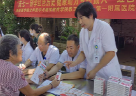 接着,第二站来到了黄竹村委会,在王身坚书记的带领下,第一附属医院医生护士们为当地村民进行了义诊并免费赠药,同时开设骨质疏松症防治、急救知识与技能、心理科学等方面的知识讲座,并免费提供教具、宣传手册等,给黄竹村居民带去更多健康服务的同时,提升了他们自我健康管理能力。在义诊开展的同时,由学院院长常彩红面向三个基层党组织全体党员、发展对象、入党积极分子讲授以“红旗渠精神”为主题的主题教育微党课,她号召大家要持续继承和发扬党的光荣传统和优良作风,要不断增强党的凝聚力和战斗力,激励广大党员坚定理想信念,牢记使命宗旨,立足岗位,解放思想,担当作为,开拓创新。