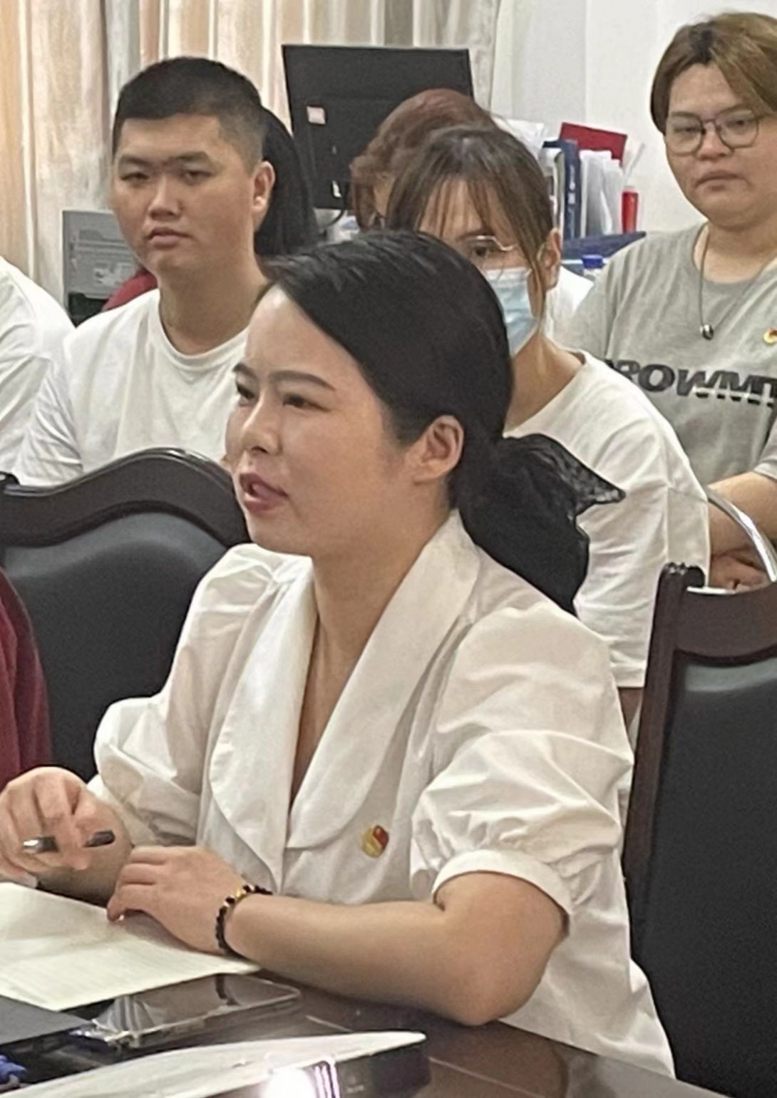 中午13点,师生们佩戴团员徽章,精神饱满地陆续进入办公室有序就坐。整个活动井然有序的进行。王身坚书记首先介绍了召开本次座谈会的目的和议程,希望师生们座谈时踊跃发言。