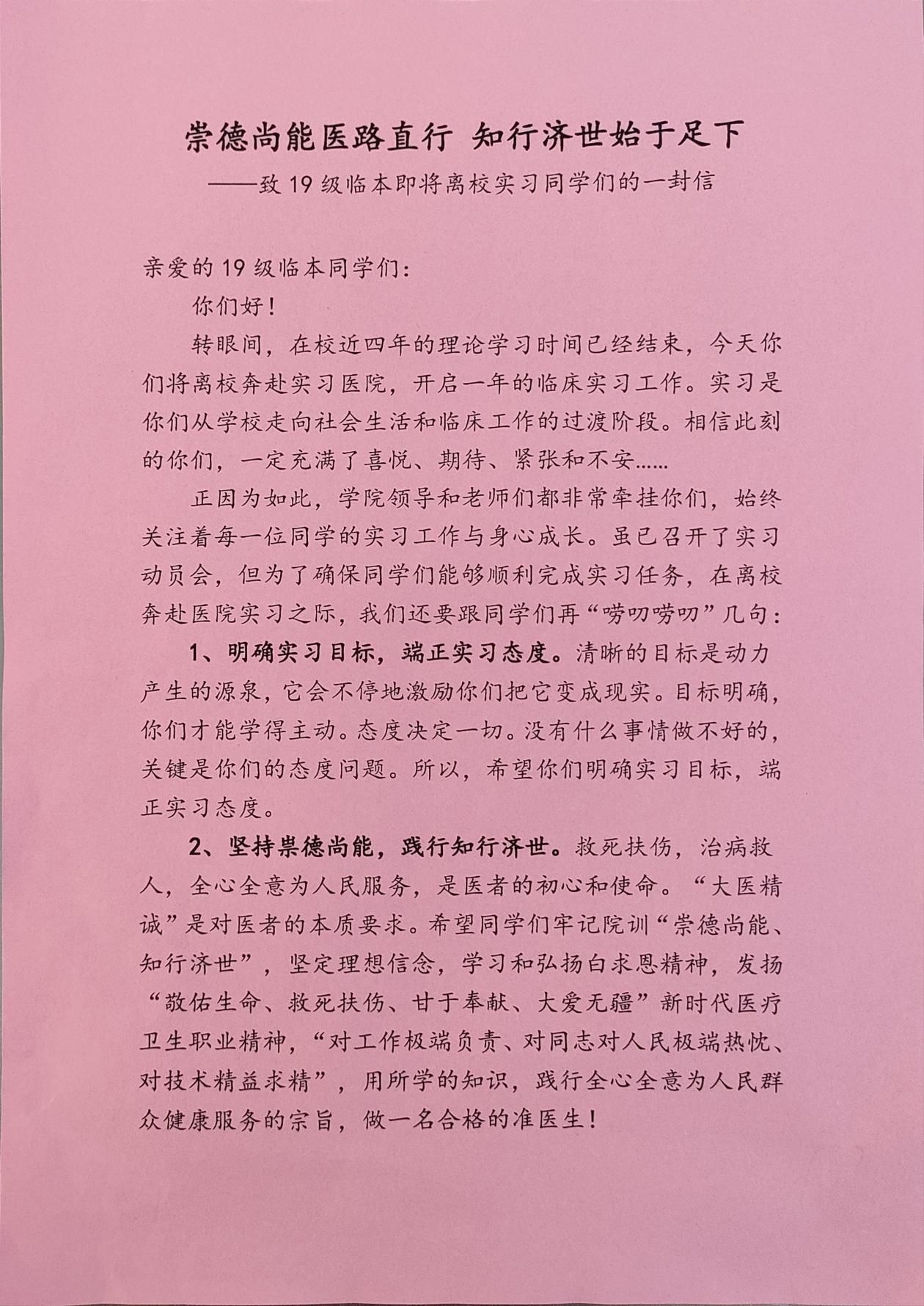 崇德尚能医路直行 知行济世始于足下 —致19级临本即将离校实习同学们的一封信