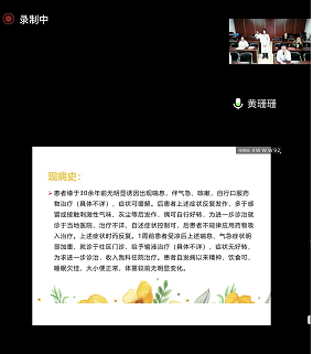会议议程第二项,见习带教新教师试讲及评课。佟敏老师主讲的《老年循环系统疾病——老年高血压》,从患者日常疲惫状态导入课堂,了解病患既往病史,讲解了辅助检查事项并介绍患者病史依据。