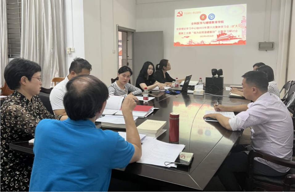 全科继教学院党委理论学习中心组召开2023年第六次集体学习会(扩大)暨教工支部“我为自贸港建新功”主题学习研讨会