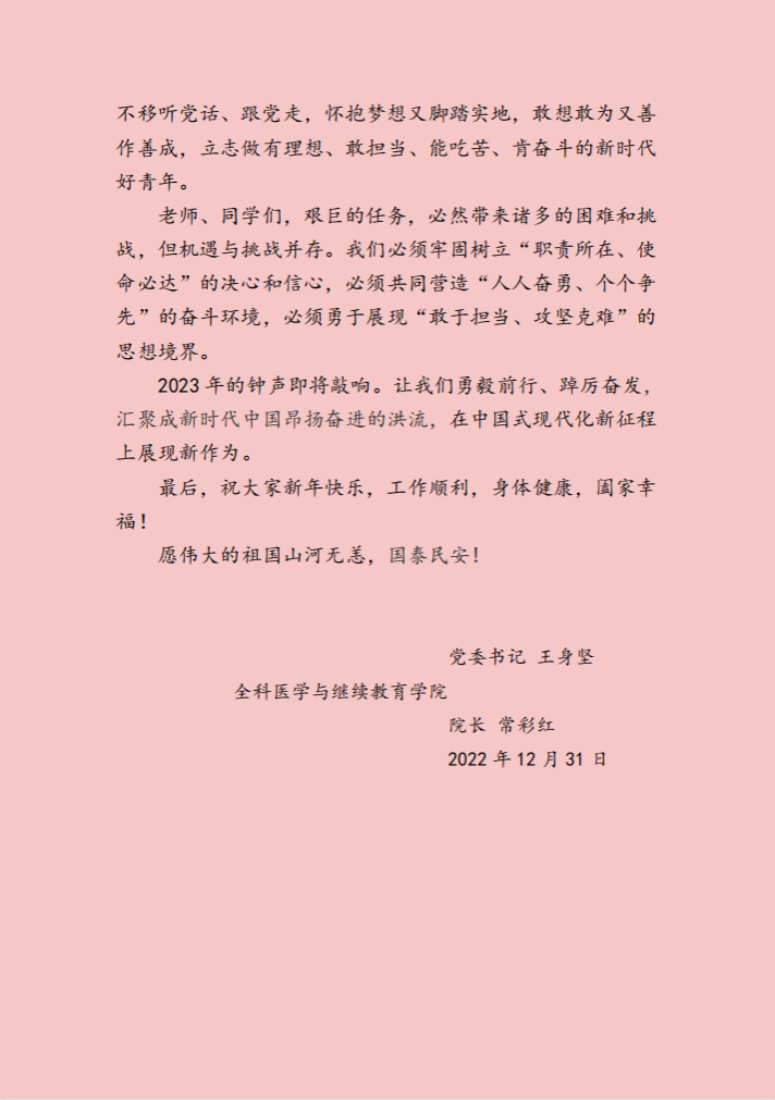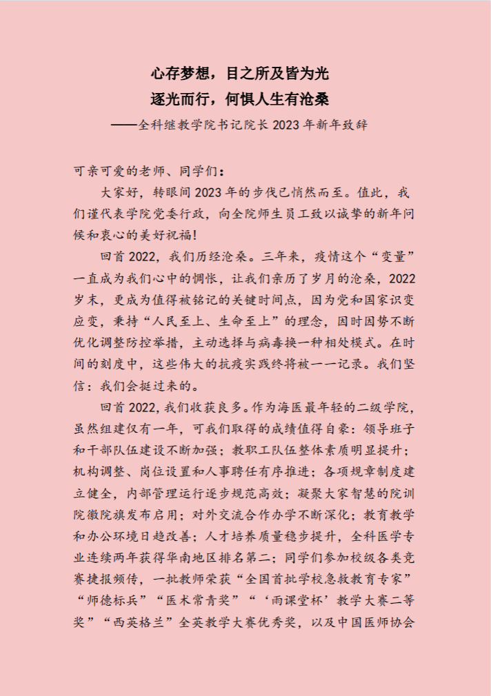 心存梦想,目之所及皆为光 逐光而行,何惧人生有沧桑——全科继教学院书记院长 2023 年新年致辞
