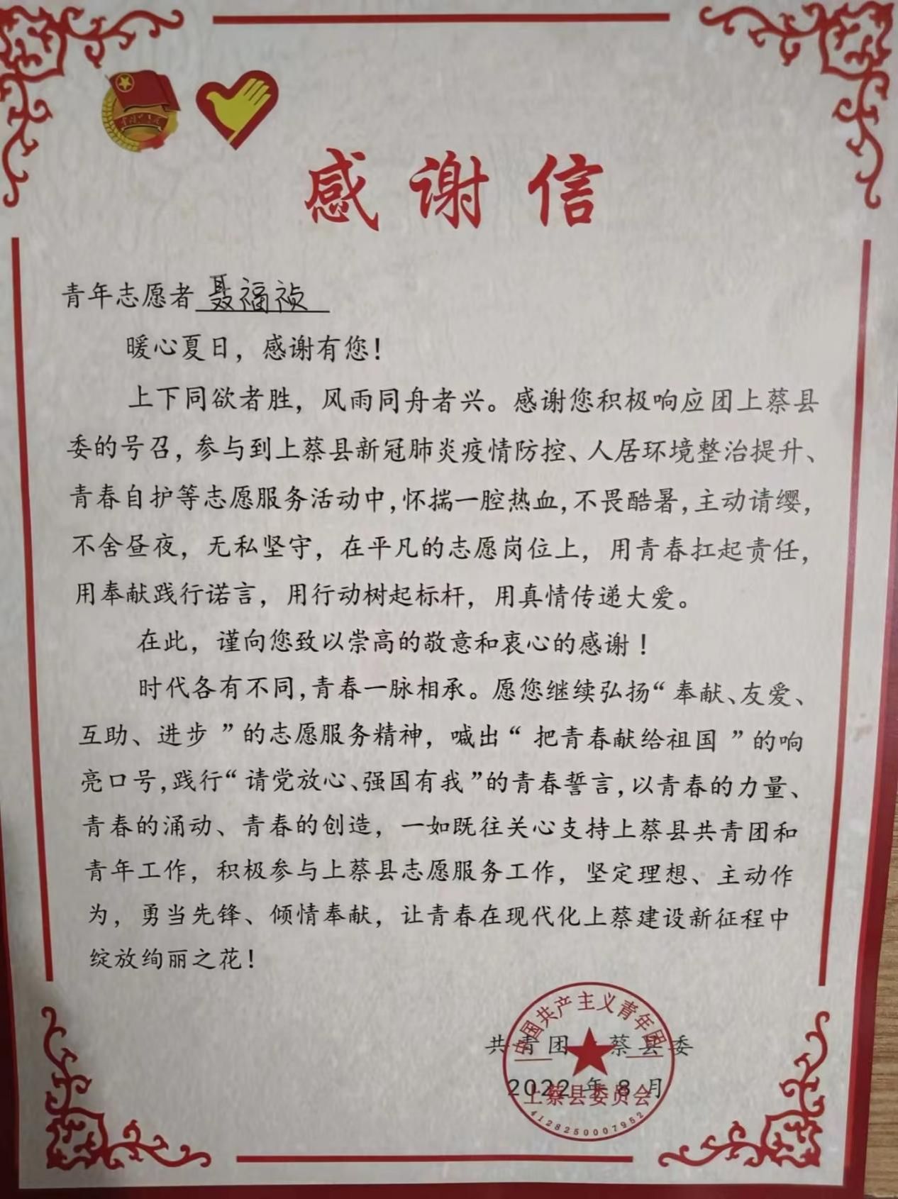 虽然志愿者的工作很累,早晨6点,需要备好行装,来不及吃的早餐,连轴4小时的采集核酸信息录入。有时我的脸上满是汗水,衣服几近湿透,工作重复又繁琐,条件艰苦又随机,或是站在烈日下忍受高温的炙烤,或是面对困难各不相同的群众。每到工作结束时,饥肠辘辘、口干舌燥、挥汗如雨已是常态。在这段非凡的经历中,“予人玫瑰,手有余香”与青年人的担当,让我学习、收获了更多同时也提升了自己。