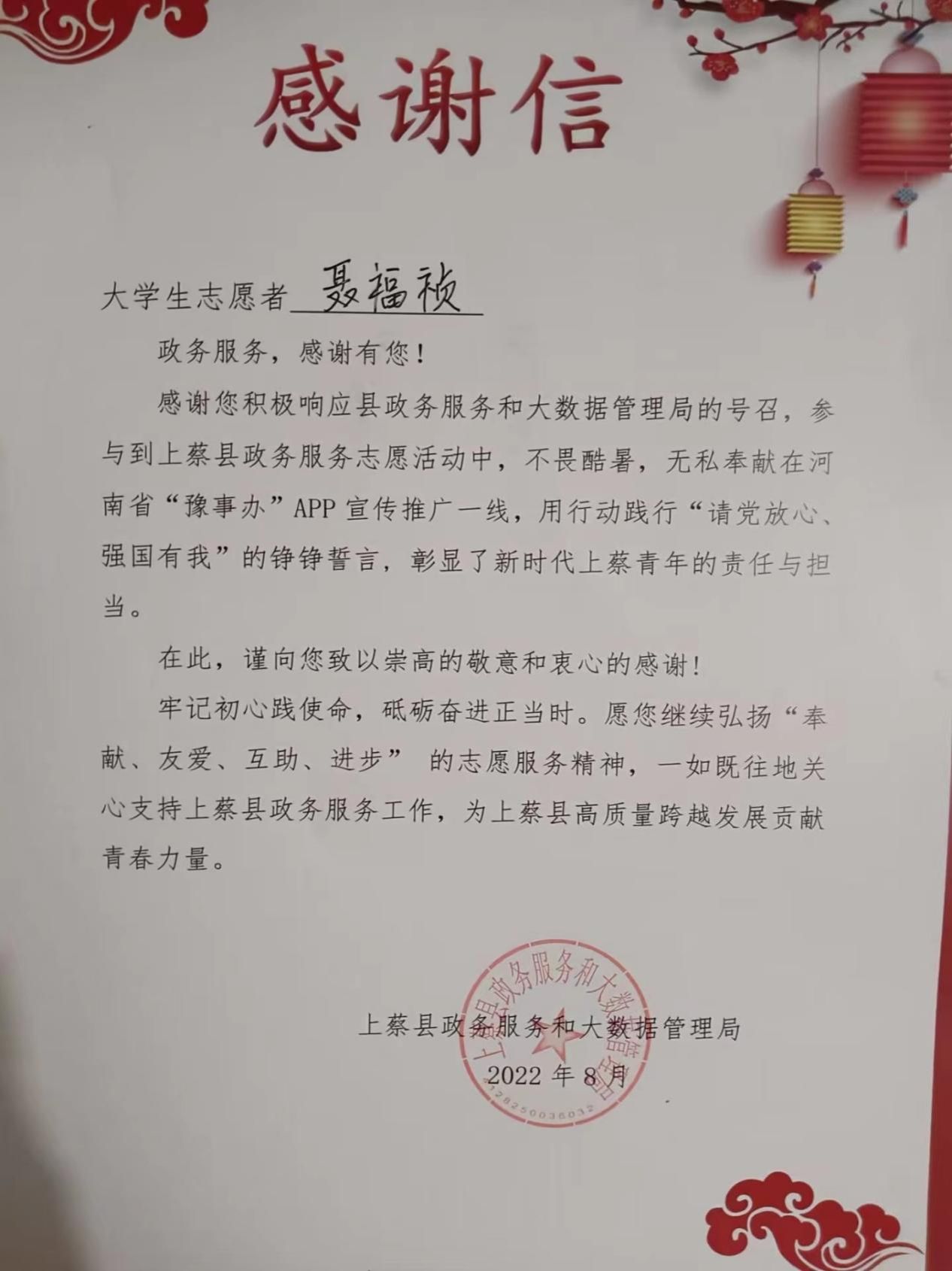 之后,我便怀揣着满腔热血投入到河南省驻马店市上蔡县杨屯乡田乔村抗疫志愿服务中去了:身披红马甲,执行着口罩分发,体温监测,帮助村民们下载政府防疫软件“豫事办”,完成推广,核酸采集信息录入等各项工作。