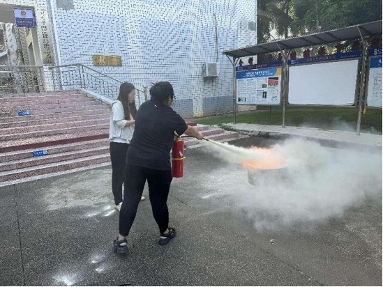培训结束后,师生到崇礼楼东侧开展消防实战演练,通过演示真实火灾灭火场景,让师生亲自上手使用灭火器灭火,确保每名参培人员都能掌握灭火器的正确使用方法。