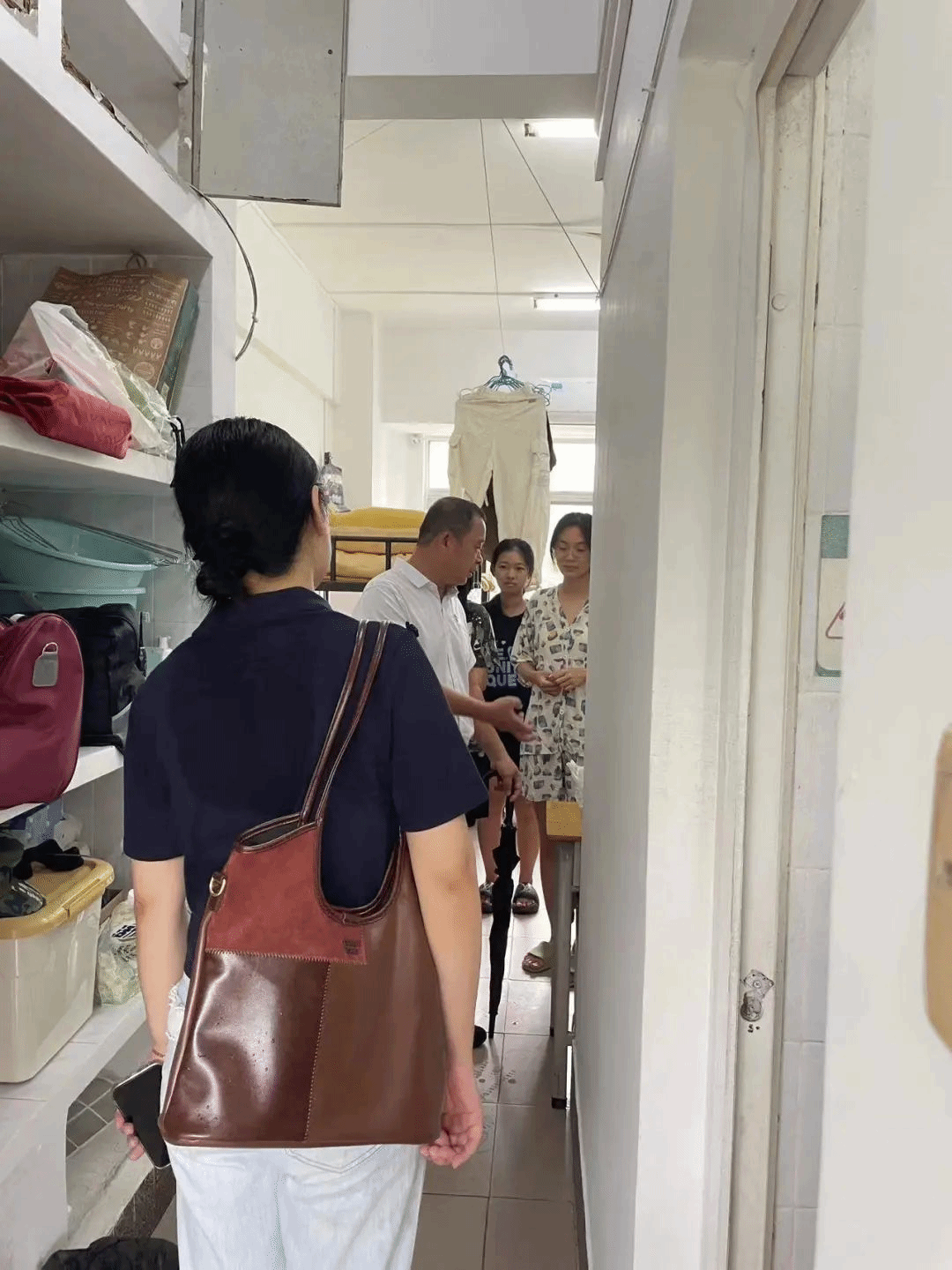 韦杰书记迈着沉稳的步伐走在队伍前列,神色专注而认真,他那深邃的眼神中透露出对学生们的殷切关切与深厚期待。肖垟主任紧随其后,目光敏锐地扫视着宿舍的每一个细节,手中的笔记本随时准备记录下可能存在的问题。周妮老师、许丹老师和孙月萍老师则面带微笑,以饱满的热情和十足的耐心,仔细查看新生们的住宿环境。