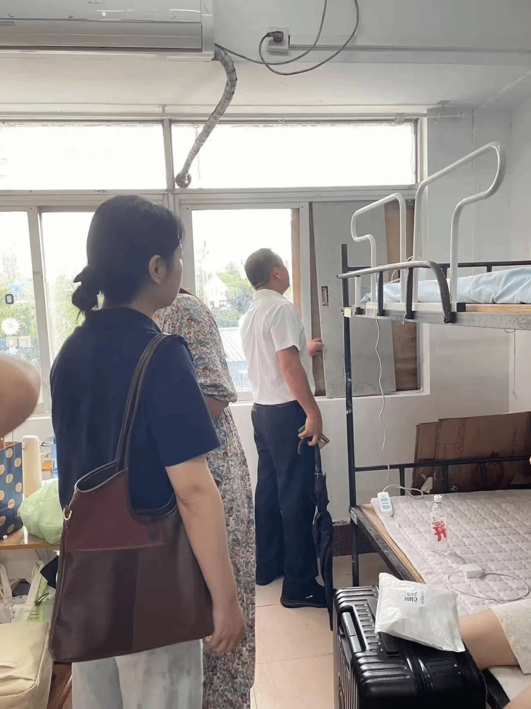 2024年9月5日上午8点30分,全科医学与继续教育学院党委韦杰书记,满怀着对学生的深切关怀与高度责任感,亲自带领学生工作办公室肖垟主任以及新生辅导员周妮老师、许丹老师和孙月萍老师,深入学院学生宿舍开展台风前巡查,指导学生做好防风工作。