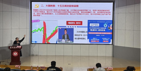 随后,马黛丹老师对二十届四中全会精神的核心要义进行了系统解读。她围绕全会提出的重大思想观点、重要论断部署,结合当前发展实际,深入浅出地阐述了全会精神的丰富内涵、精神实质与实践要求,引导大家深刻领会党中央的战略意图和决策部署,切实将思想和行动统一到全会精神上来。