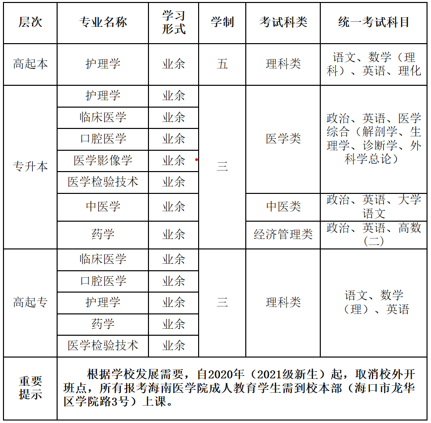 7.具体报考条件以2020年国家教育部及海南省考试局的有关成人教育招生规定执行。