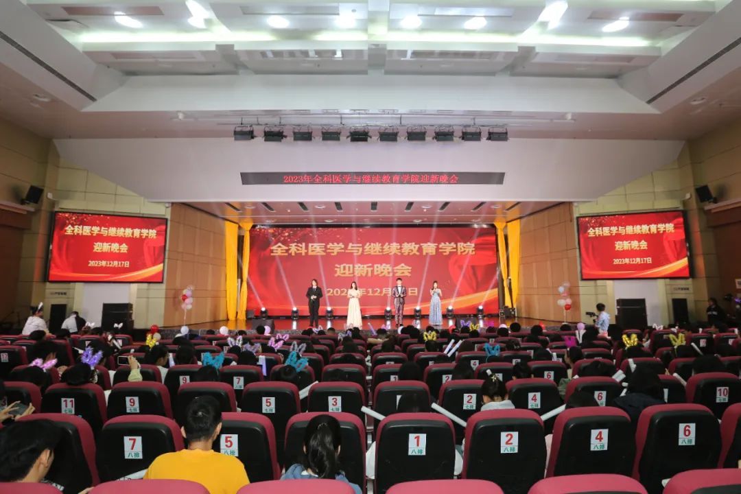 2023年,全科医学与继续教育学院迎来335名2023级新生。为隆重迎接和帮助新生融入taptap点点大家庭,由全科医学与继续教育学院团委主办,全科医学与继续教育学院学生会承办的以“青春礼赞新时代,踔厉奋发向未来”为主题的2023年迎新晚会于12月17日晚在国际报告厅举行。晚会由刘津妤、王心悦、刘金龙、吴科卓四位同学共同主持。学院党委韦杰书记、常彩红院长、顾申红副院长、全体教职工及学生约600人共享了这场欢乐祥和、昂扬向上的迎新晚会。