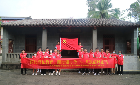 为深化党纪学习教育,提高党员的政治觉悟和党性修养,增强“四个意识”、坚定“四个自信”、做到“两个维护”,牢记习近平总书记的殷殷嘱托,帮助学生党员扣好人生的第一粒扣子,5月24日,我院学生第一党支部和第一附属医院党小组共19名党员前往海口市新坡镇仁台红色革命教育研学基地,开展“深入学习党纪条例,知廉知耻守纪正风气”主题党日活动。