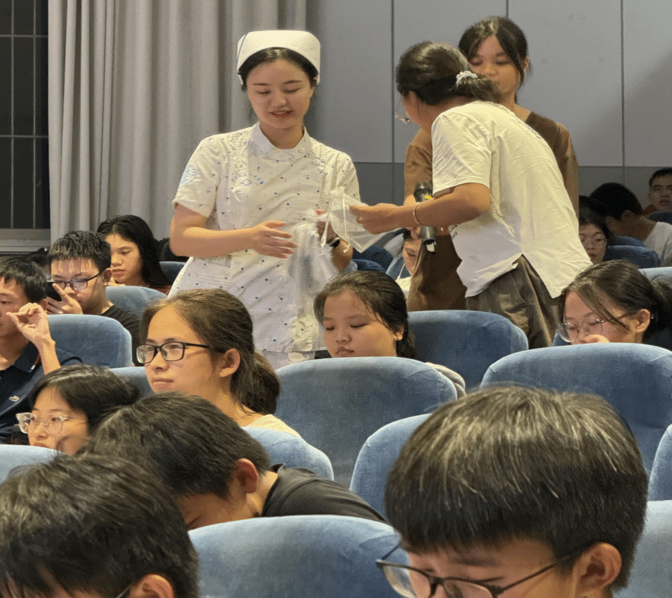 随后,海南省第五人民医院的孙冷冰医生向同学们重点介绍了果酸换肤在痤疮治疗中的应用。她通过生动的案例,让同学们了解了果酸换肤的作用机制、治疗效果及注意事项,此外,就光动力治疗痤疮也进行了详细讲解。活动过程中,同学们全神贯注,听得津津有味,并且积极踊跃地回答了郑小乐和孙冰冷医师的提问。