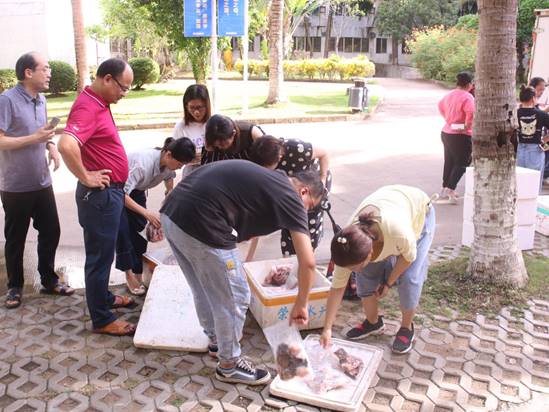 活动当天,由孵化基地创业团队承担石斑鱼的校内配送任务,他们引导大学生积极参与扶贫工作,讲解扶贫攻坚的重大意义,激发大学生仁爱精神和社会责任感,进一步完善“以购代捐”工作流程。此次活动采用线上(APP)线下订购模式,预定后委托万宁市和乐镇贫困户家庭人员进行采购、宰杀、包装并送至学校孵化基地创业团队大健康服务公司,各订购户到学校孵化基地取货。现场taptap点点教职工有序认购石斑鱼,为消费扶贫献力量。最终taptap点点教职工认购石斑鱼共计1277斤,22531元。