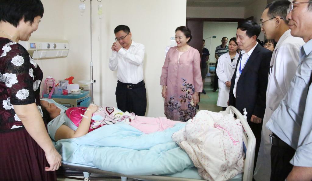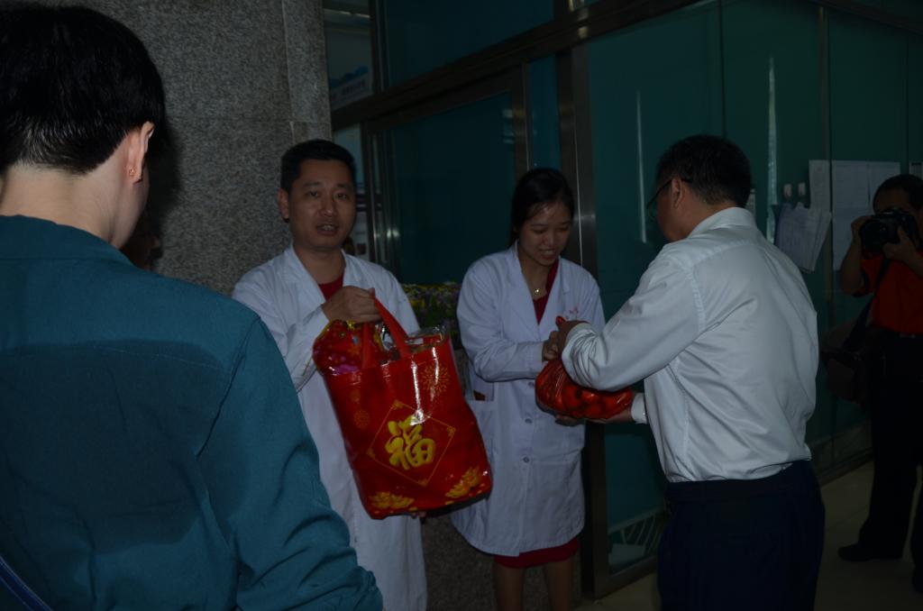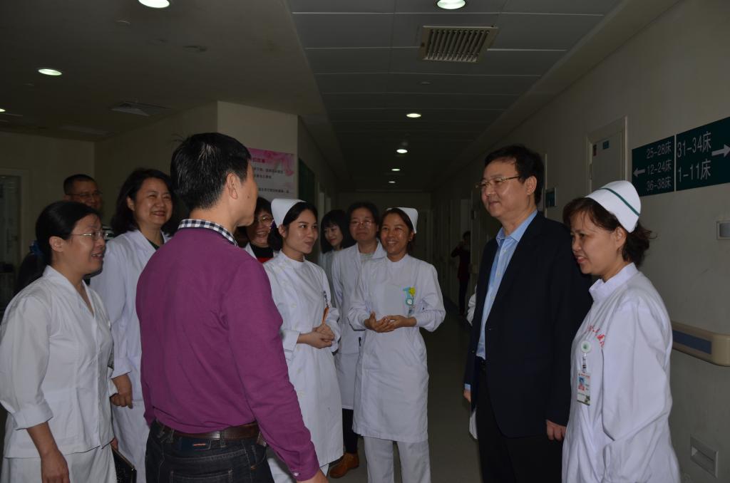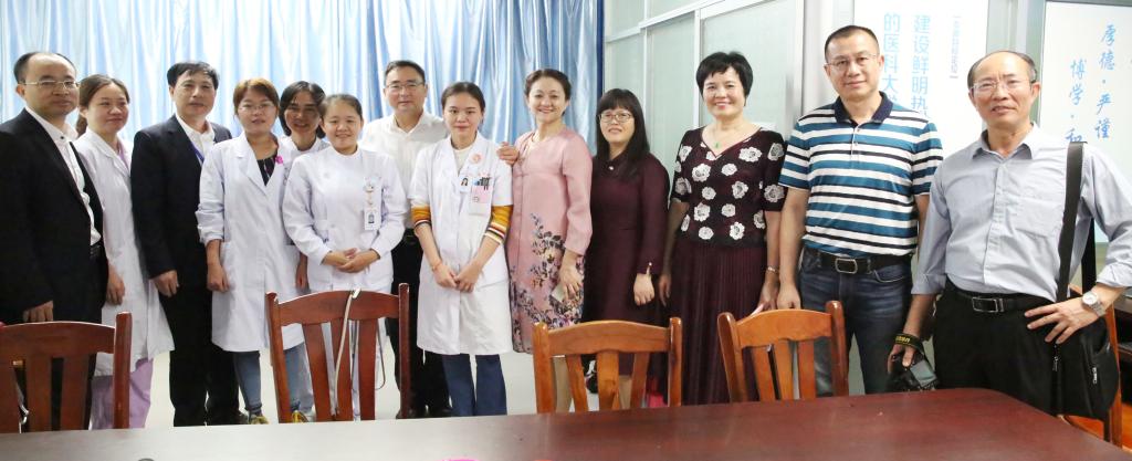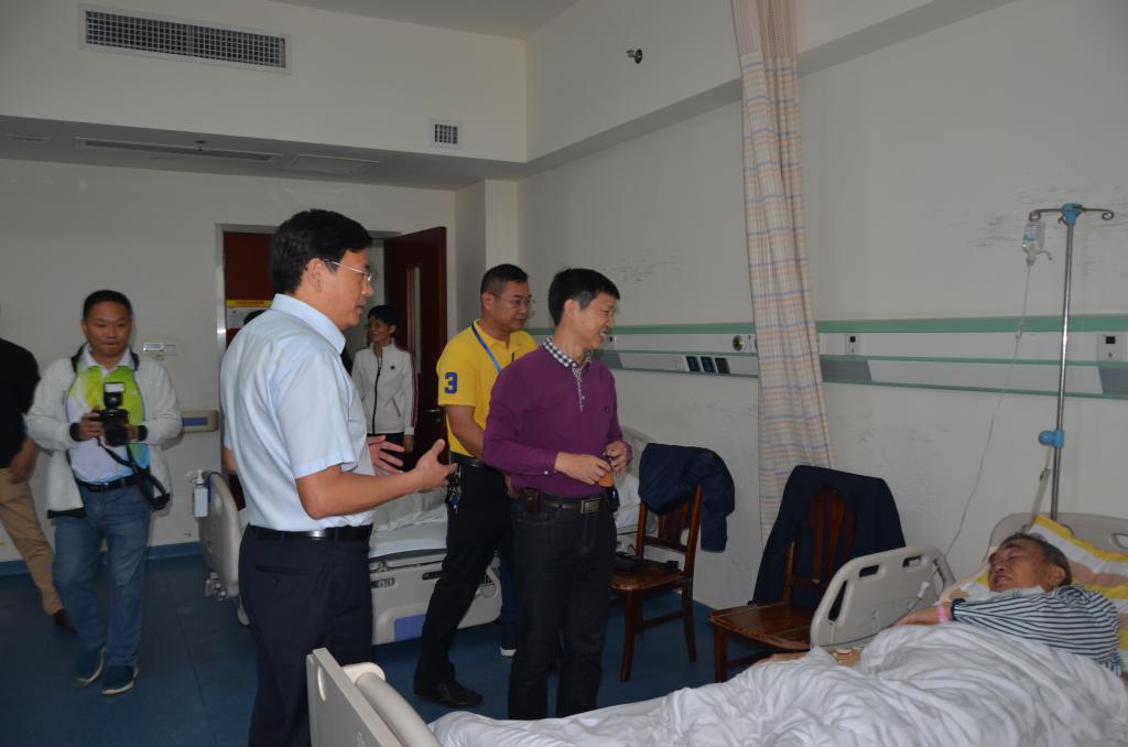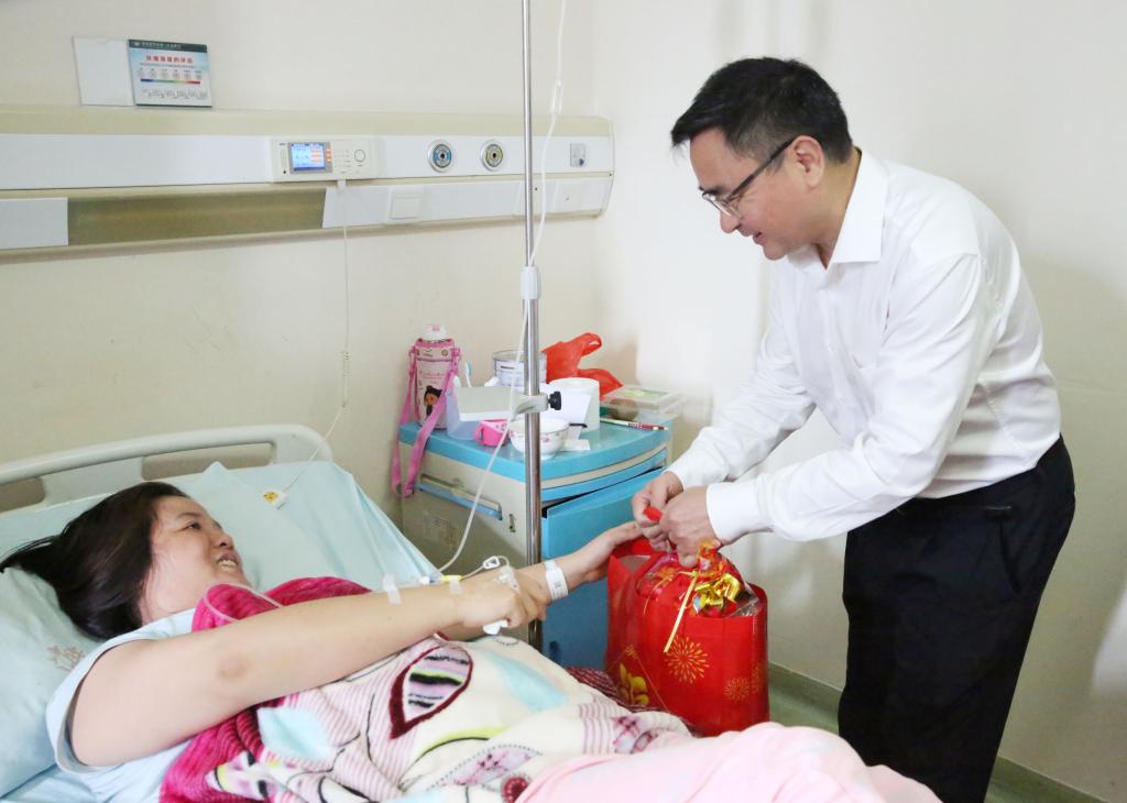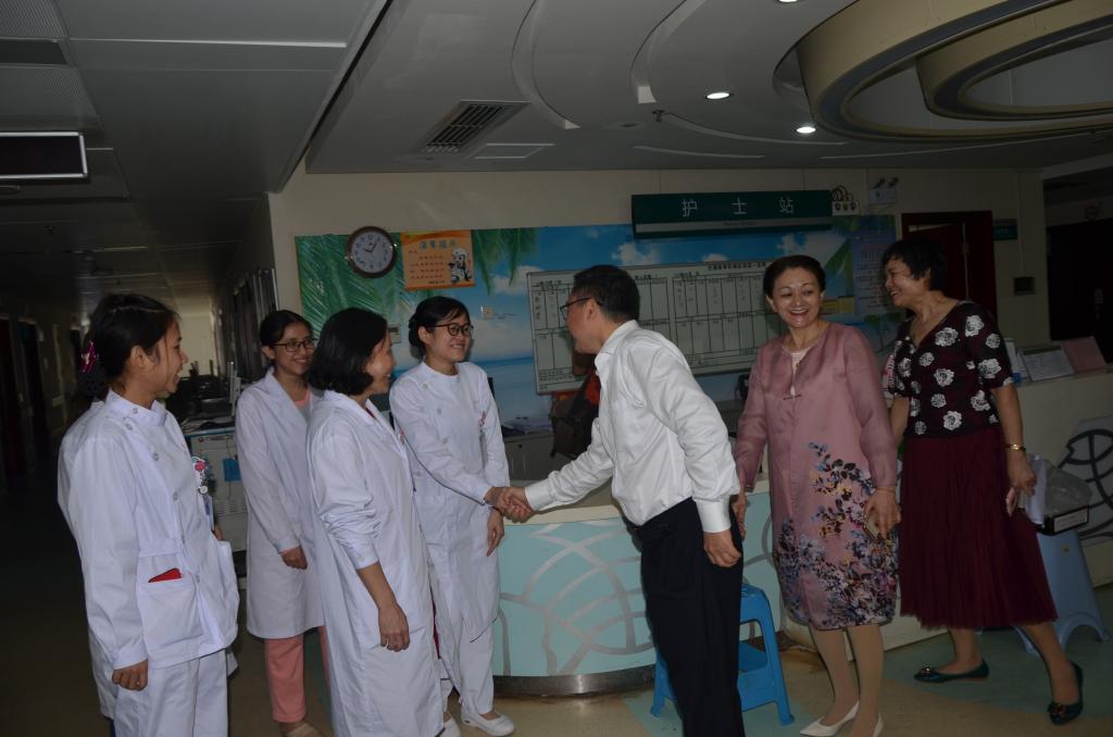 附属海南医院党委书记赵建农,第二附属医院院长王毅,第一附属医院院长李丽、党委书记蔡毅,附属肿瘤医院常务副院长李富军等相关医院领导及医院有关职能部门负责人参加慰问。