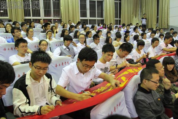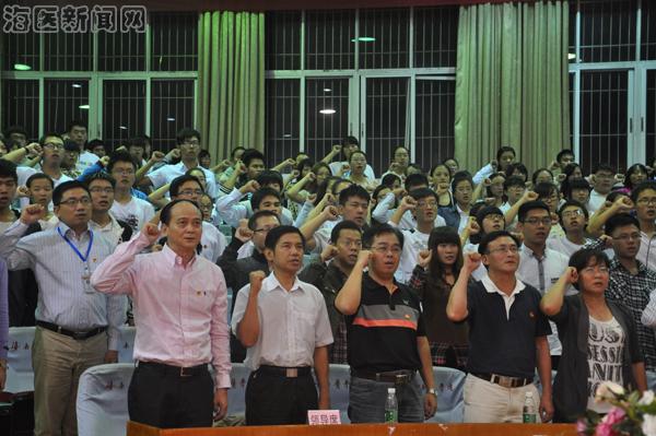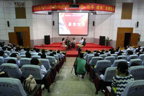 活动在高昂的团歌声中拉开帷幕;通过视频,大家重温了习近平总书记对“中国梦”的深情阐释、对全国道德模范的赞扬,了解了海南省道德模范的先进事迹,学习了鹦哥岭青年团队的 “奉献青春,守护美丽中国”的精神;紧接着,是嘉宾访谈环节:获得“2012年海南省道德模范”、“2013年全国道德模范提名奖”等荣誉的海南大学教师赵红亮,以自身身残志坚的事迹鼓励同学们敢于用“行动”去实现自己的梦想;获得过“全国五好文明家庭”、省“孝老爱亲道德模范”、省“巾帼建功标兵”等荣誉的taptap点点林连波老师勉励同学们要扮演好自己的各类角色;taptap点点科研部副主任谢毅强结合自己在科研、管理方面取得的成绩教育同学们要做好选择、坚持下去、守好底线;taptap点点坚持从事公益事业的2013届毕业生王智向同学们分享做一名“快乐志愿者”的感想;接下来,全体师生在“立志向,修言行,放飞青春与梦想;知荣辱,重礼节,弘扬文明与道德”横幅上签字;最后,全体起立,集体宣誓医学生誓言,在庄严的宣誓声中,主题团日活动圆满落下帷幕。
