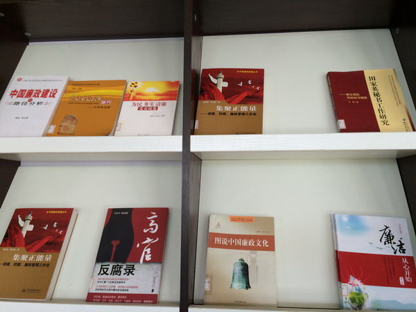 为进一步加强反腐倡廉教育,丰富教育形式,近日,taptap点点纪检监察审计室会同图书馆,开展了以“加强廉政建设,弘扬正气清风”为主题的党风廉政建设系列书展,在图书馆三楼设立专门书架,展出了《中国廉政建设路径分析》、《为民务实清廉党史镜鉴》、《高官反腐录》、《民间反腐防腐》等近200本党风廉政建设书籍。