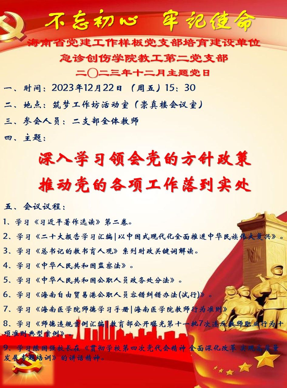 二〇二三年十二月主题党日:深入学习领会党的方针政策,推动党的各项工作落到实处