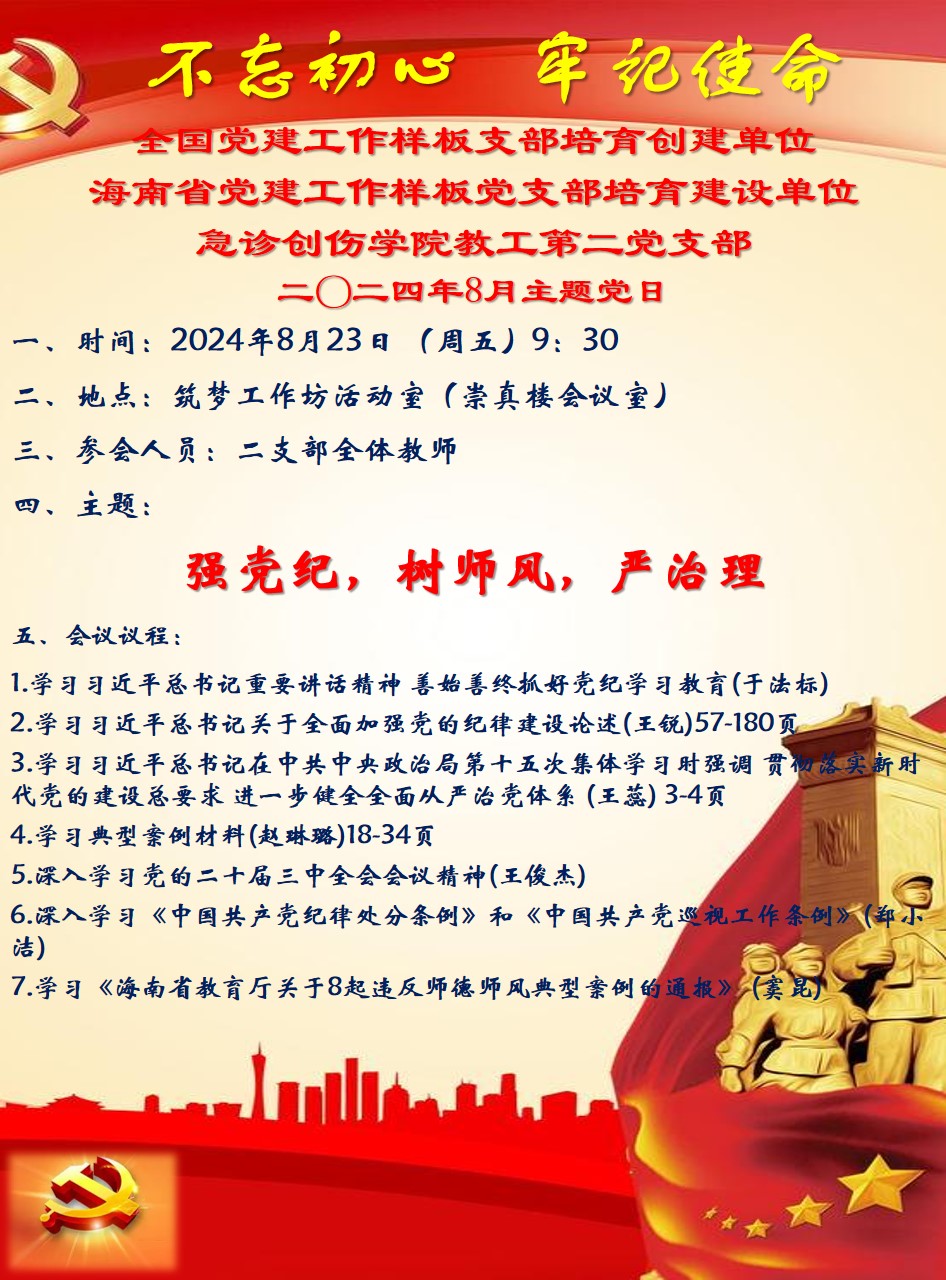 二〇二三年8月主题党日:强党纪 树师风 严治理