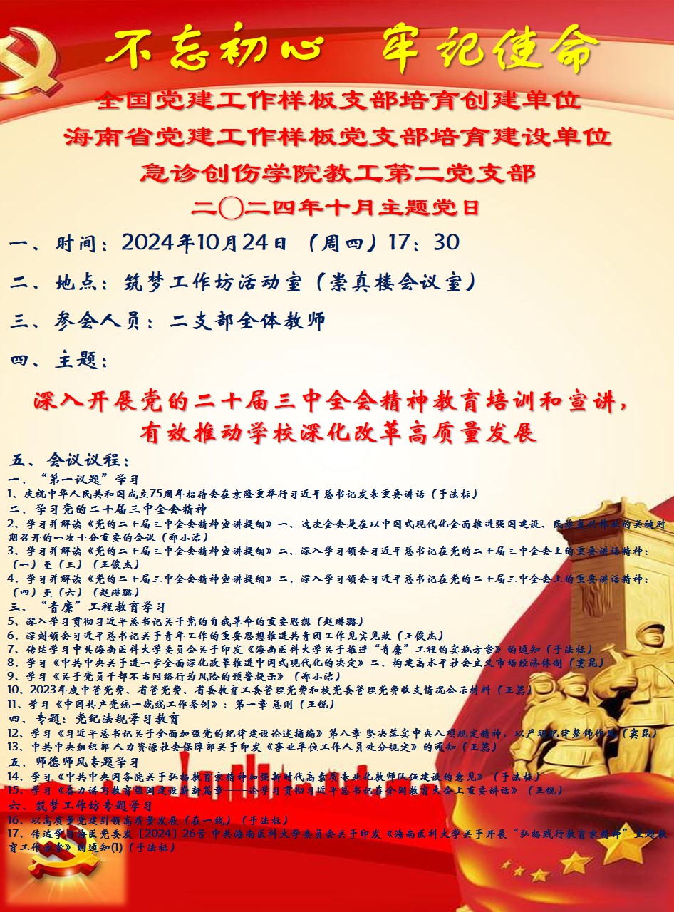 二〇二四年10月主题党日:深入开展党的二十届三中全会精神教育培训和宣讲, 有效推动学校深化改革高质量发展