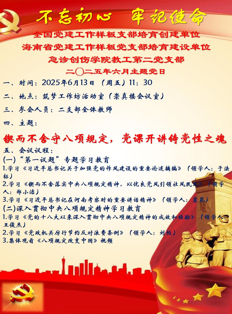 二〇二五年六月主题党日 锲而不舍守八项规定,党课开讲铸党性之魂