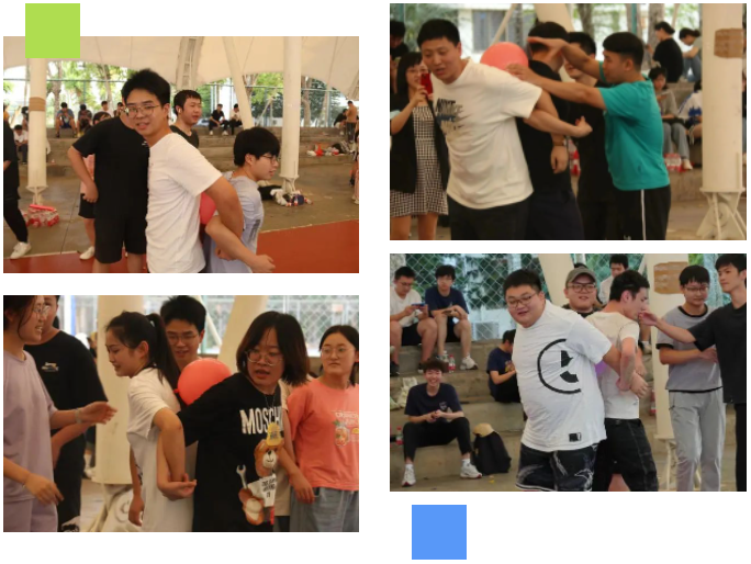 第三比赛为“螃蟹背球”,两名同学为一组,进行接力。同学们默契的侧身跑,手挽着手,背夹着球,共同奔向终点。同学们乐此不疲,不断地在为彼此加油鼓劲!