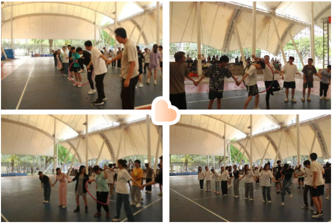 “珠行万里”的热潮还未散尽,下一项比赛“缺一不可”开始了,从一个人到十个人的穿圈挑战,同学们有条不紊地进行着,比赛途中同学们用尽全力,齐心协力完成了最终挑战,收获到了优异的成绩