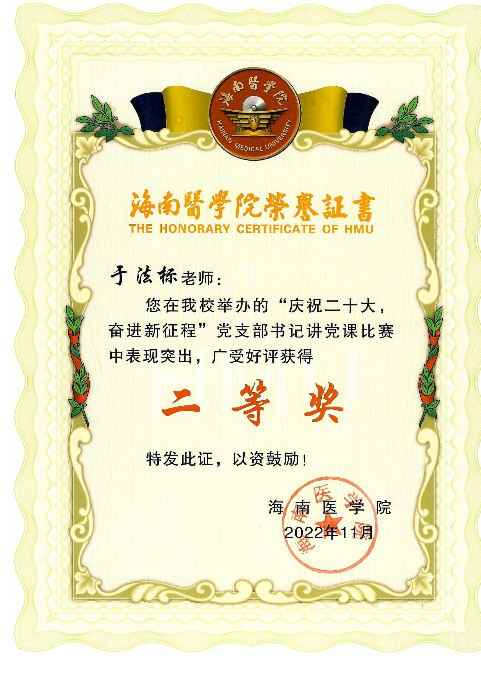 我支部获得“喜迎二十大,奋进新征程”党支部书记讲党课比赛二等奖