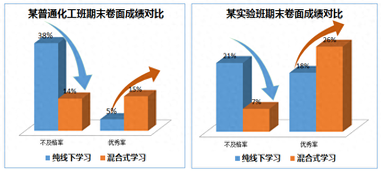 通过对学生期末试卷的分析显示,教学创新后,不及格率明显下降,优秀率显著提升。