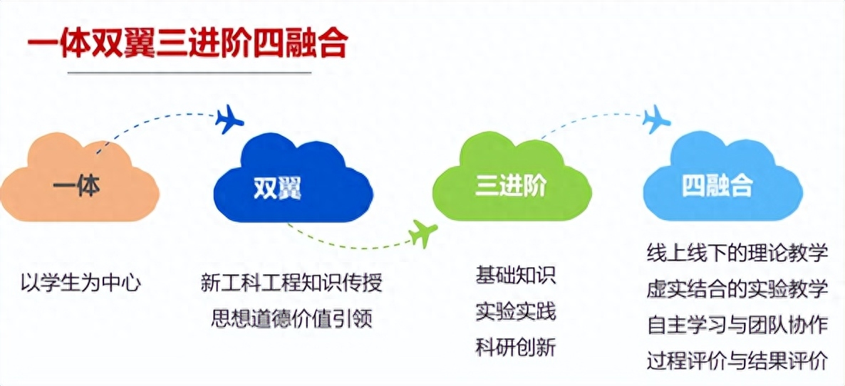 一体“以学生为中心”,以学生为主体重构教学内容和教学模式,利用线下课堂进行讨论和分享,让育人过程从老师为主的讲授,转变为以学生中心的学习讨论分享,师生协作,使育人效果更加突出。(育人理念的融合)