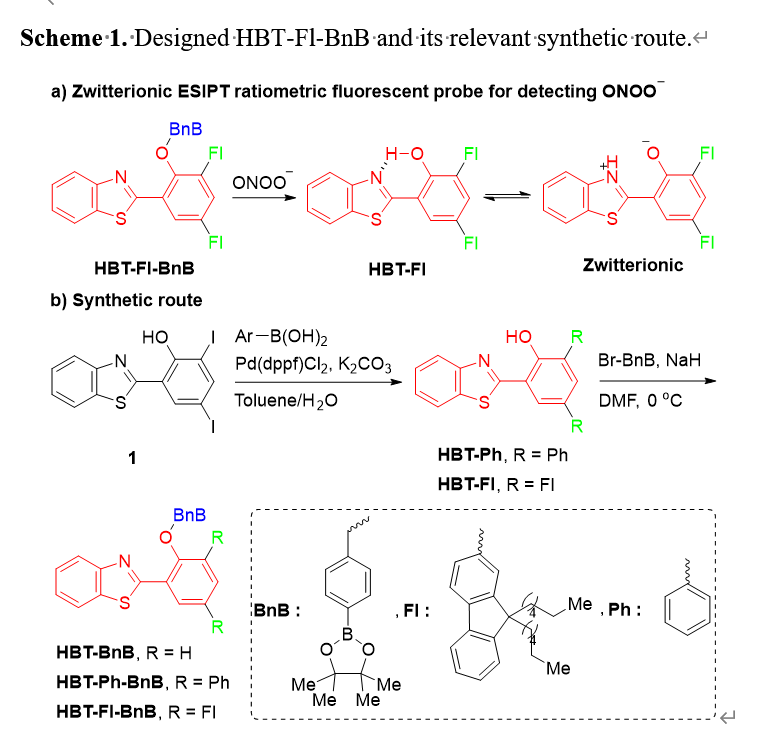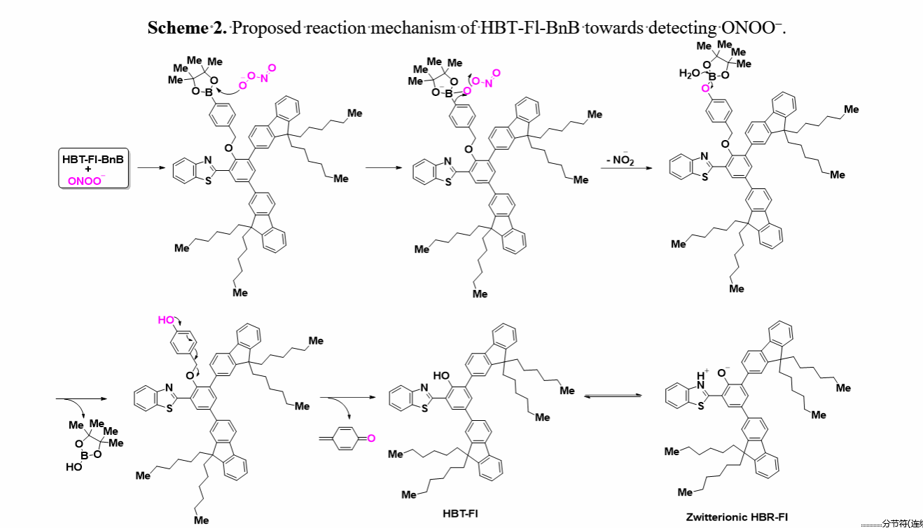 方案2. HBT-Fl-BnB检测ONOO的拟议反应机制。