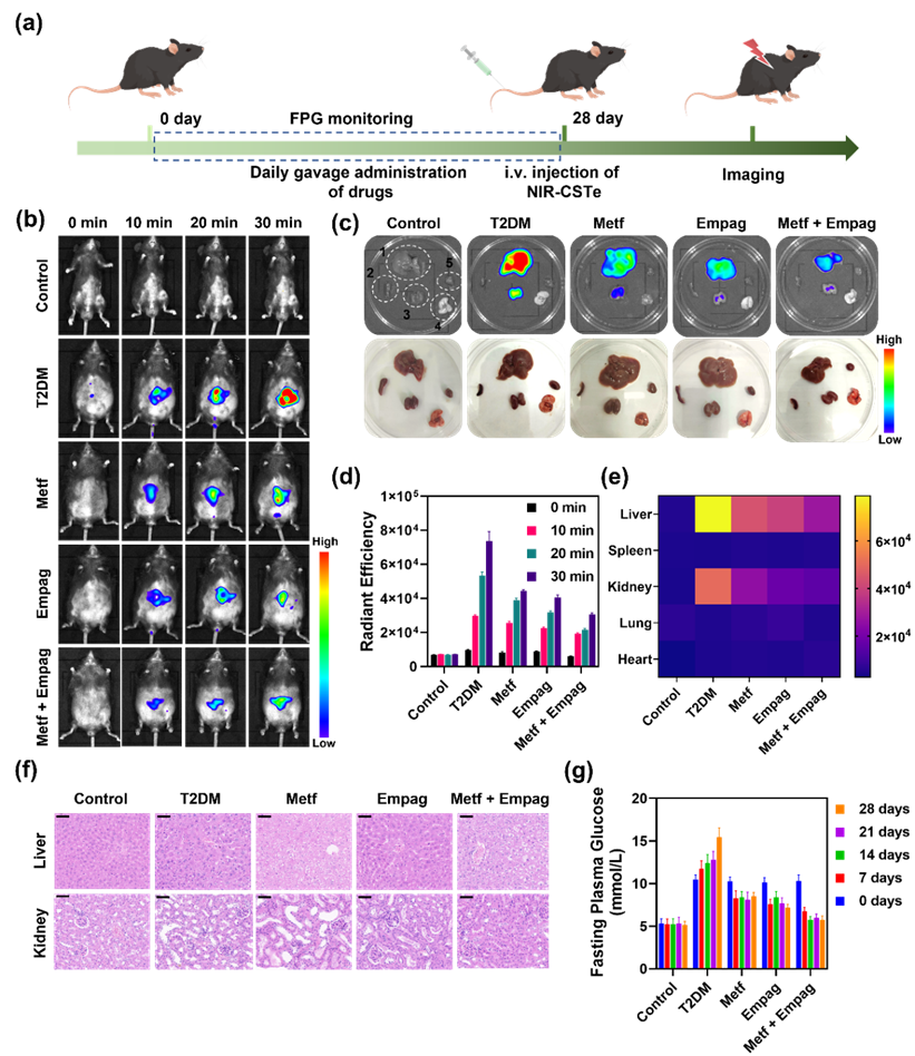 In conclusion, leveraging the reaction selectivity of tellurium, we designed a novel reversible NIRF probe, NIR-CSTe, that could be employed to track the variation of the ONOO-/GSH redox couple. NIR-CSTe reacted specifically with ONOO- and generated its oxidation product NIR-CSTeO, thus resulting in a noticeable fluorescence enhancement at 655 nm. The fluorescence could be subsequently restored by the addition of GSH, confirming the probe's reversible nature. NIR-CSTe demonstrated sufficient sensitivity to image exogenous and endogenous ONOO-/GSH variations in live cells without inducing obvious cytotoxicity. With the assistance of confocal fluorescence imaging, NIR-CSTe demonstrated for the first time that GSH levels in Fer-1 co-incubated cells could be recovered in the presence of Era removal, a process not possible with DFO treatment. Additionally, in vivo imaging showed that NIR-CSTe was a promising tool for early diagnosis of diabetes and evaluation of drug treatment efficacy. We anticipate that our study will not only increase interest in tellurium-containing fluorescent probes but also provide a valuable tool for the prediagnosis and treatment of diseases related to ONOO-/GSH redox imbalances.