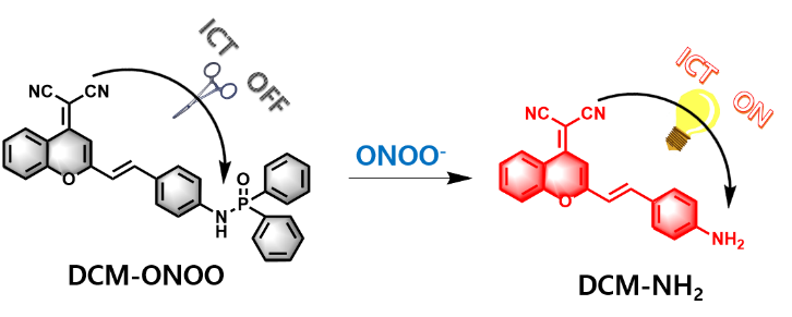 图1. 探针结构和对ONOO-检测的机制