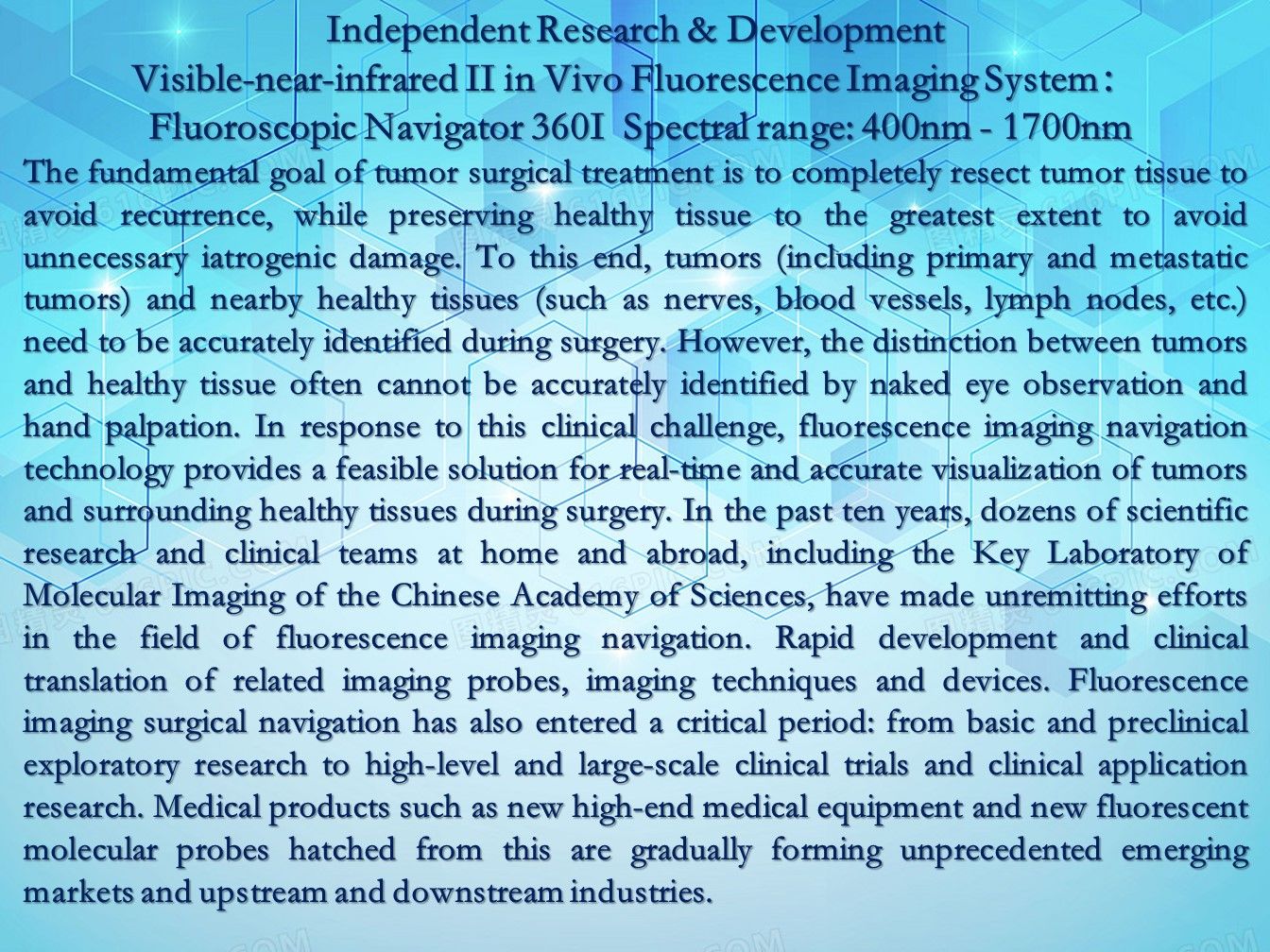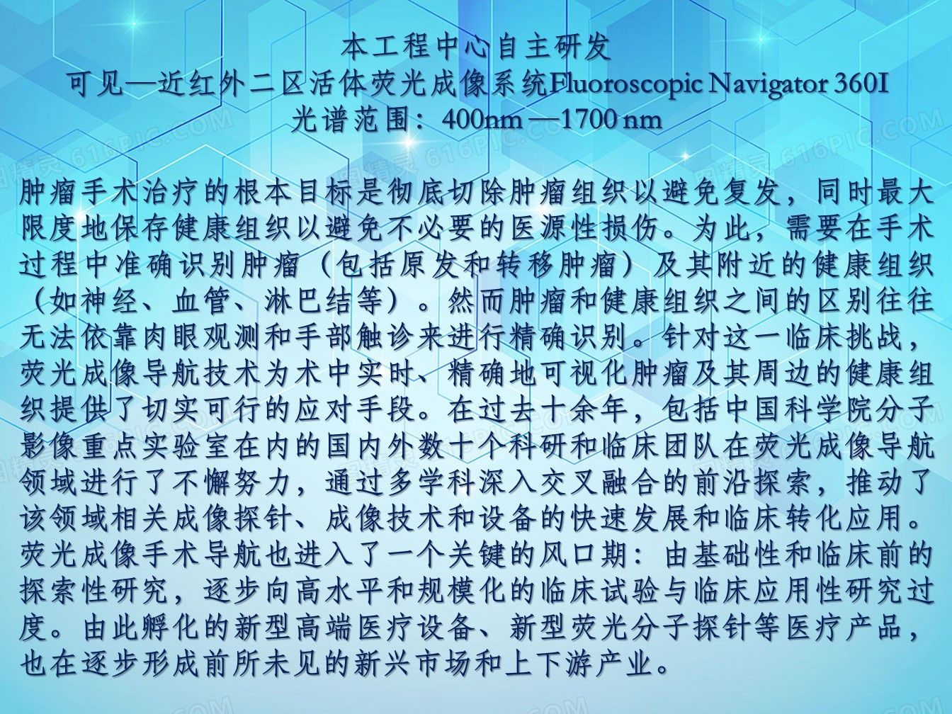 可见及近红外二区(波长:400 - 1700 nm,带X光模块)活体荧光成像系统Fluoroscopic Navigator 360II转化与需求