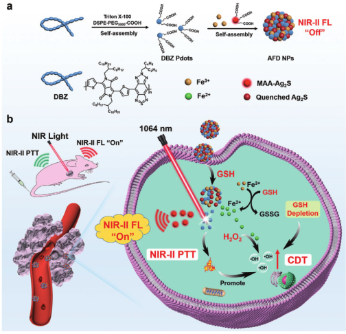 NIR-II荧光成像和协同NIR-II光热化学动力学治疗的肿瘤特异性可激活光治疗纳米平台
