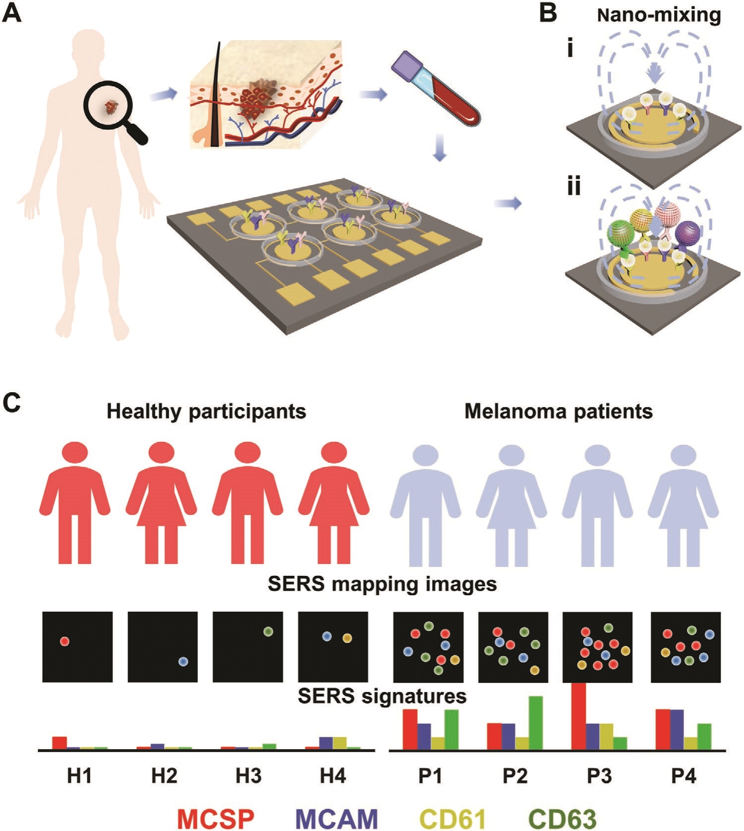 集成微流体- SERS平台在早期黑素瘤中实现血清EVs的敏感表型分析