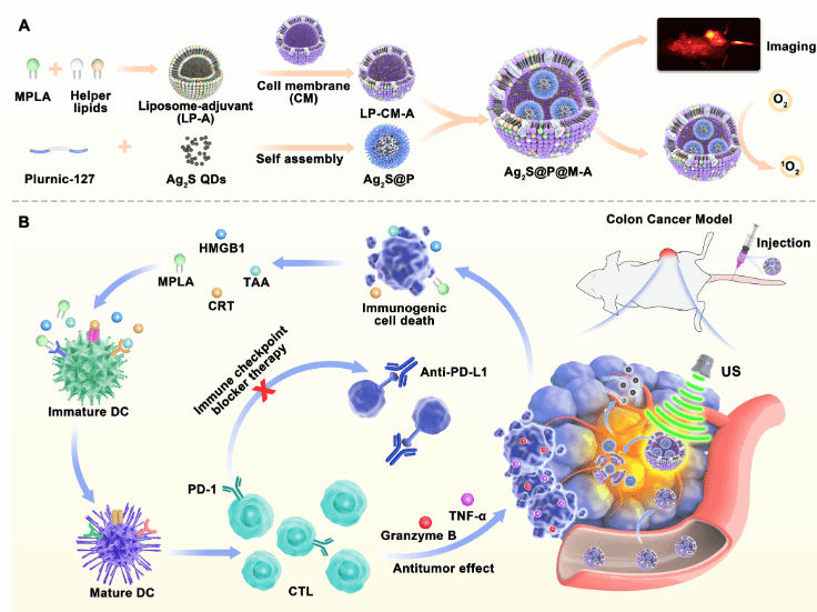 利用Ag2S量子点结合免疫佐剂 用于NIR - II荧光成像引导的声动力免疫疗法来治疗结肠